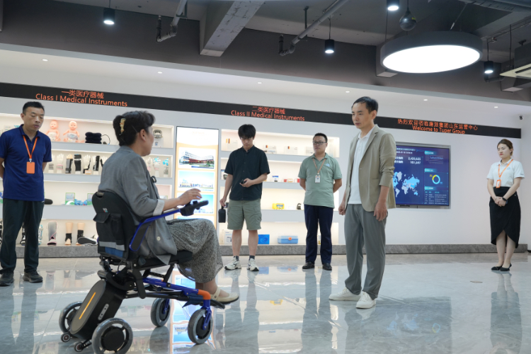 在医仑健康养老适老展示中心,陈列了唐派集团旗下多个子品牌的产品,产品品类包括家用医疗器械、医用康复支具、康复辅助器具、养老适老产品、康复训练器械及数字化智能照护设备等,全面覆盖了老年人生活照护、健康监测、康复训练等多个场景需求。其中,医仑特ENLUNTRA作为唐派集团旗下银发用品品牌,始终致力于以科技驱动和人性化设计为有老家庭提供“看得到、买得起、用得好”的一站式银发用品解决方案,目前已整合全场景银发用品2000余种,其中18类产品入选国家《老年用品产品推广目录》,居全国第一位,同时积极推进全球化,产品销售世界110多个国家和地区。